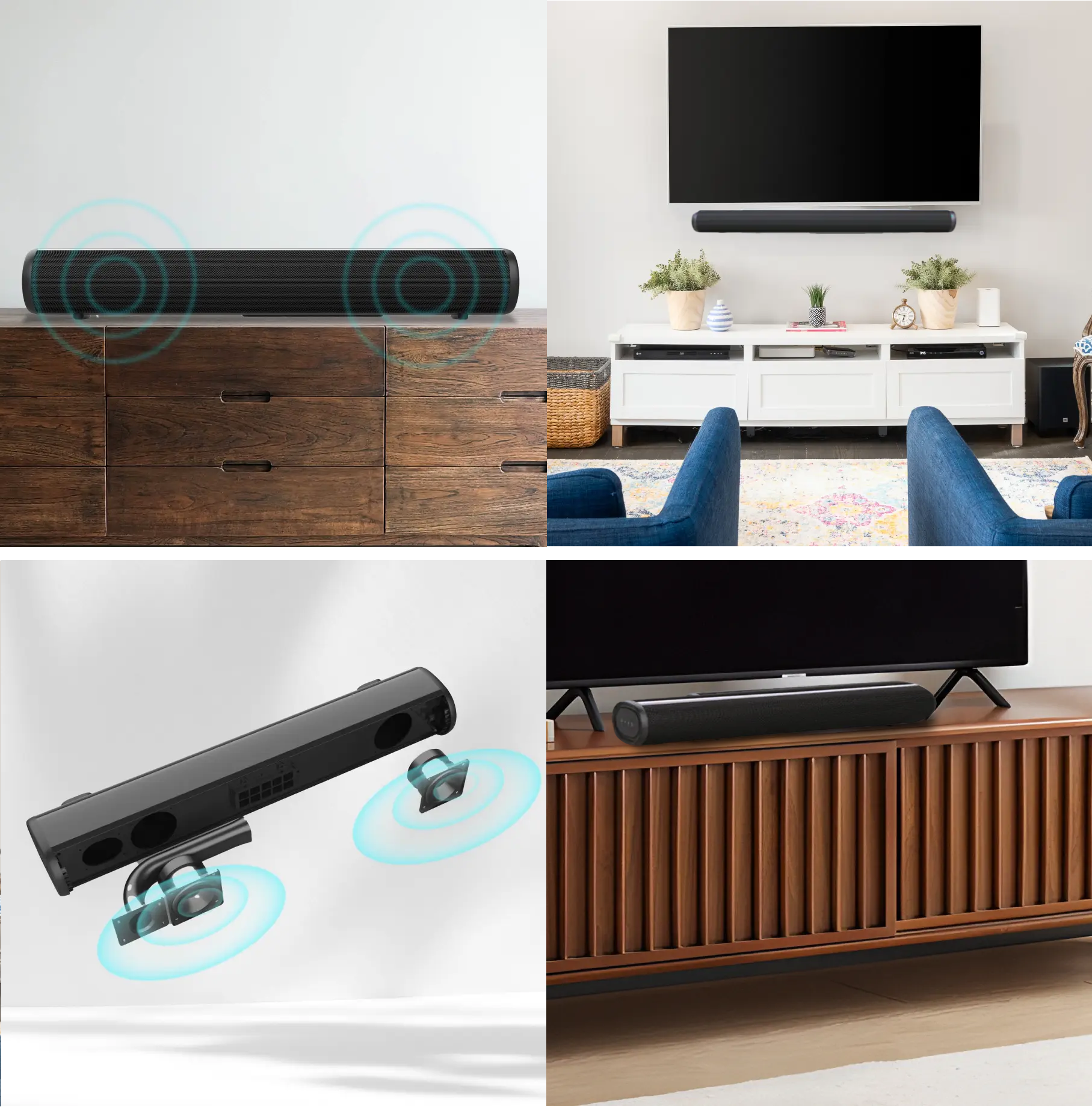 Denna soundbar skiljer sig från konkurrenterna genom att erbjuda ett brett utbud av anslutningsmöjligheter, inklusive Bluetooth, HDMI, USB och optisk ljudingång. Det gör det enkelt att ansluta dina favoritenheter såsom TV-apparater, musikspelare och spelkonsoler och njuta av ljud i hög kvalitet.